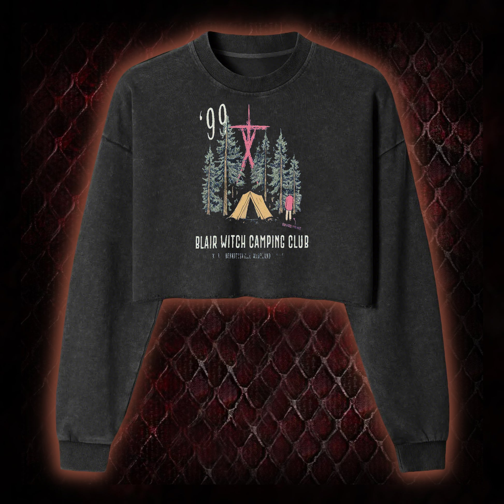 1999 Blair Witch Camping Club Horror Graphic Cropped Long-Sleeved - The Blair Witch Project Tribute Piece