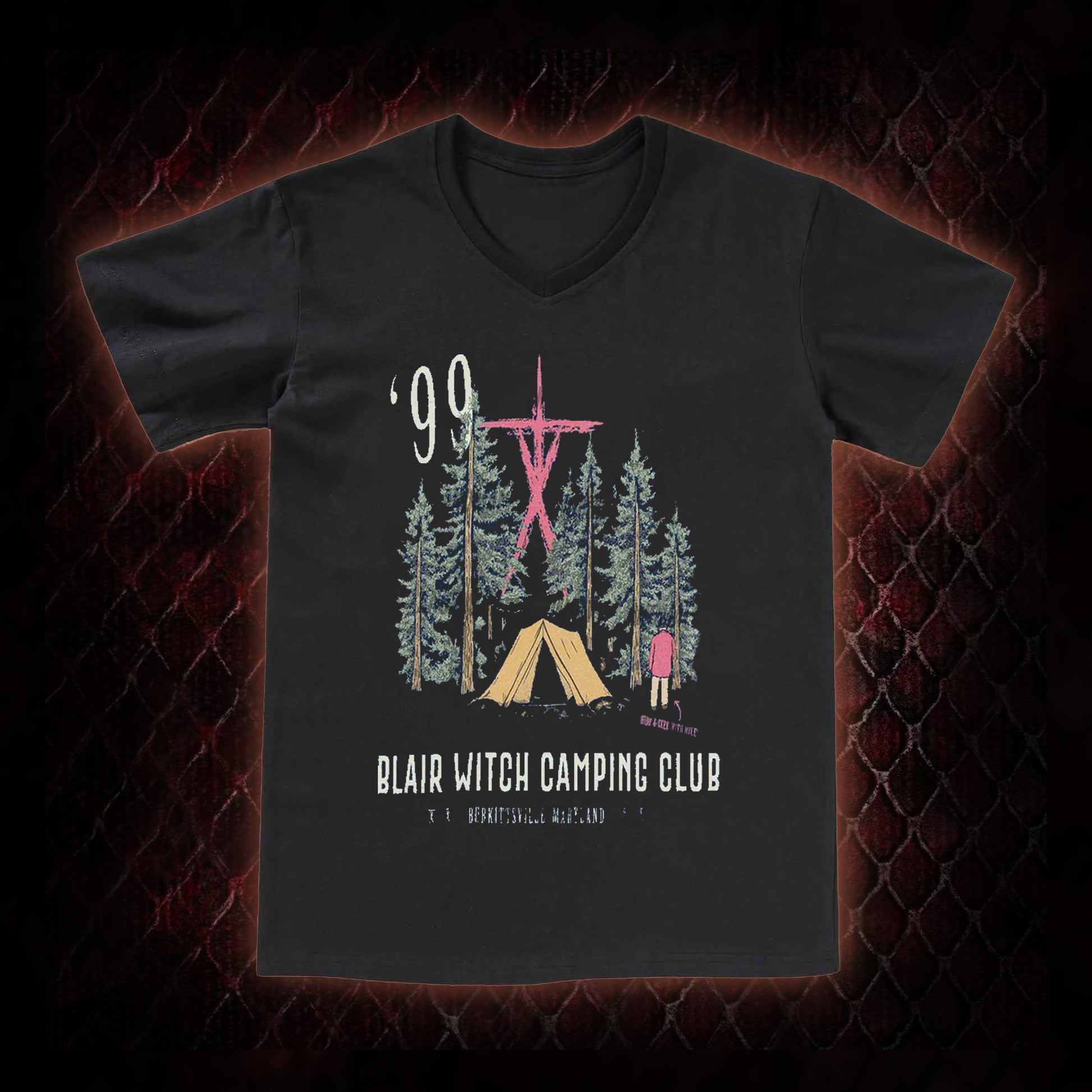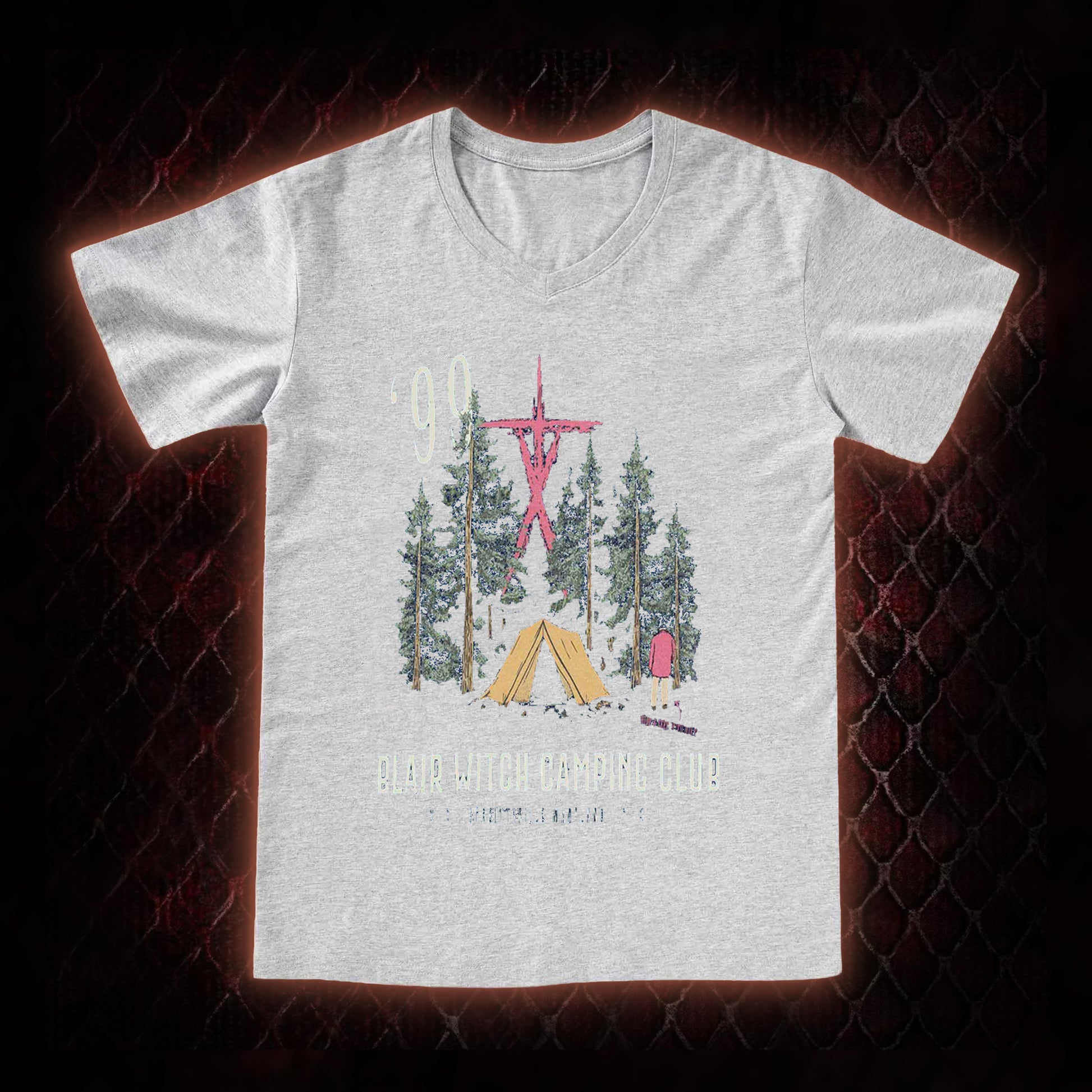 1999 Blair Witch Camping Club Horror Graphic V-Neck T-Shirt - The Blair Witch Project Tribute Piece