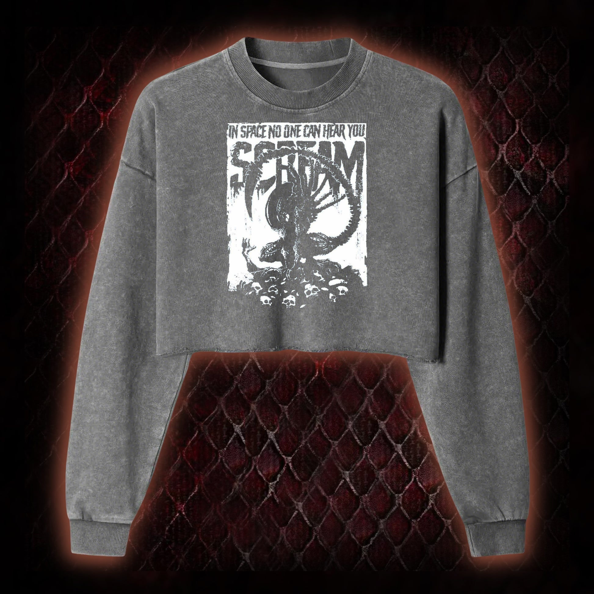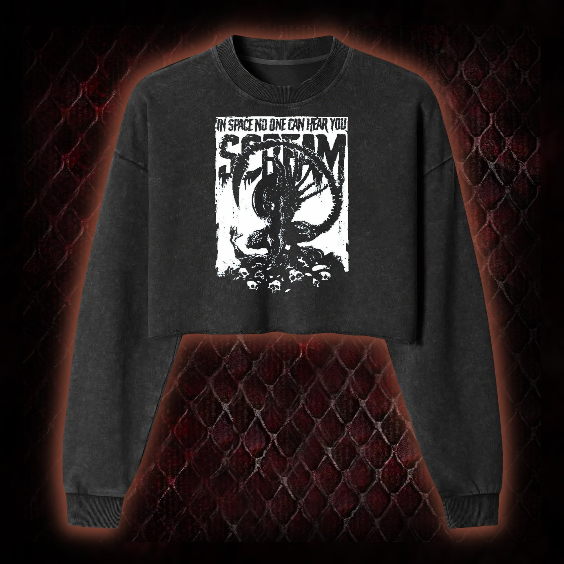 Alien 'In Space No One Can Hear You Scream' Xenomorph Graphic Cropped Long-Sleeved - Sci-Fi Horror Franchise Tribute Piece