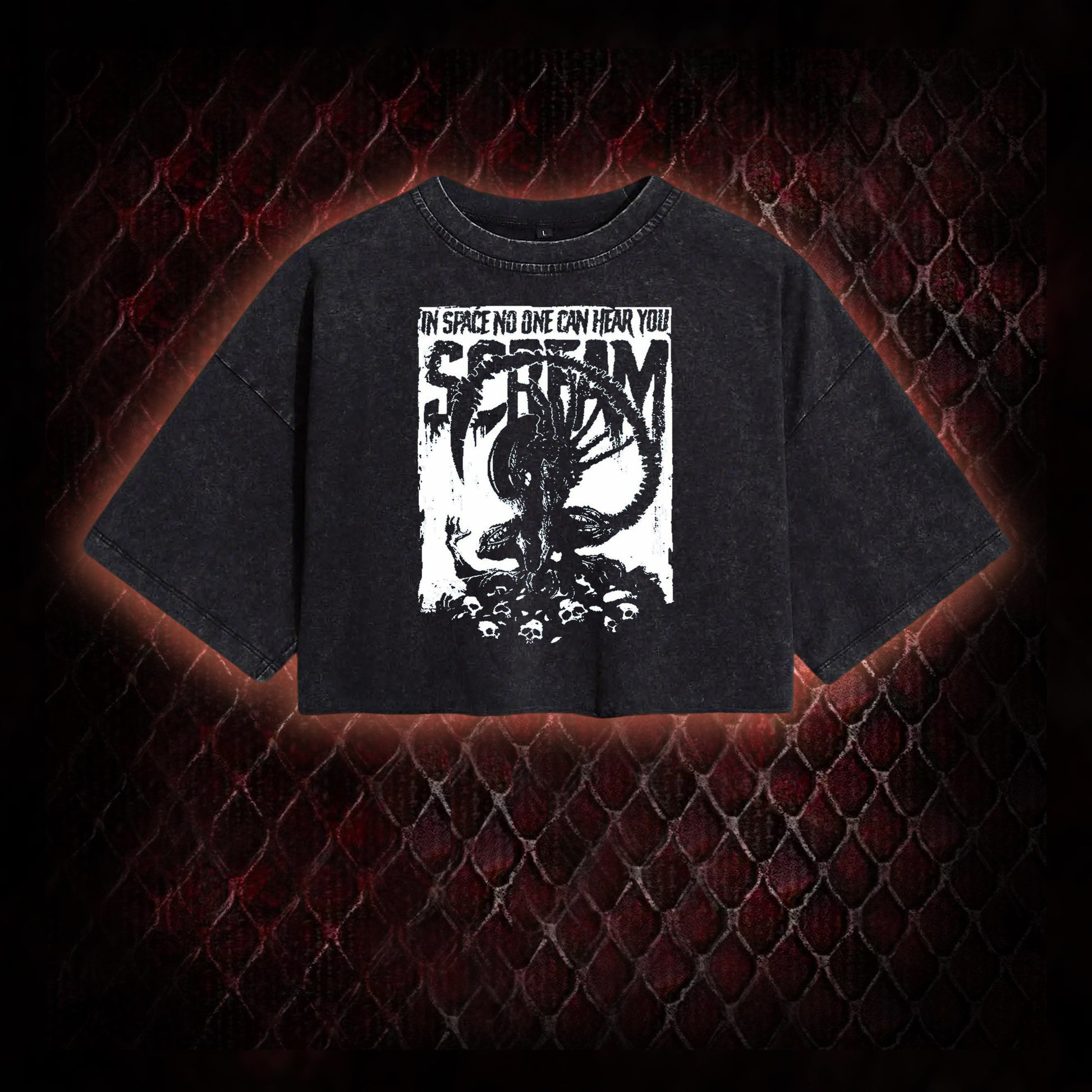 Alien 'In Space No One Can Hear You Scream' Xenomorph Graphic Vintage-Cropped T-shirt - Sci-Fi Horror Franchise Tribute Piece