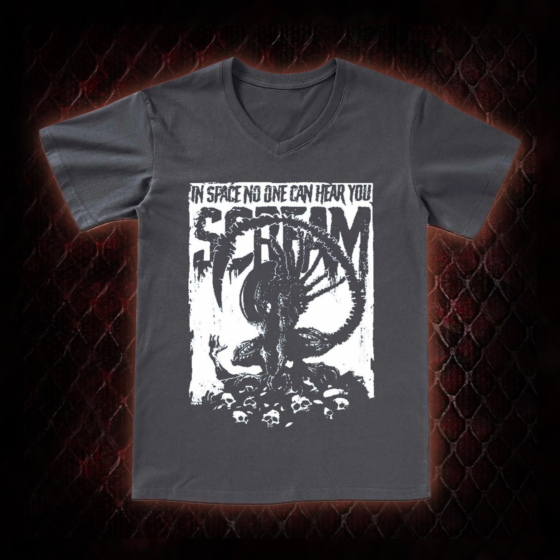 Alien 'In Space No One Can Hear You Scream' Xenomorph Graphic V-Neck T-Shirt - Sci-Fi Horror Franchise Tribute Piece