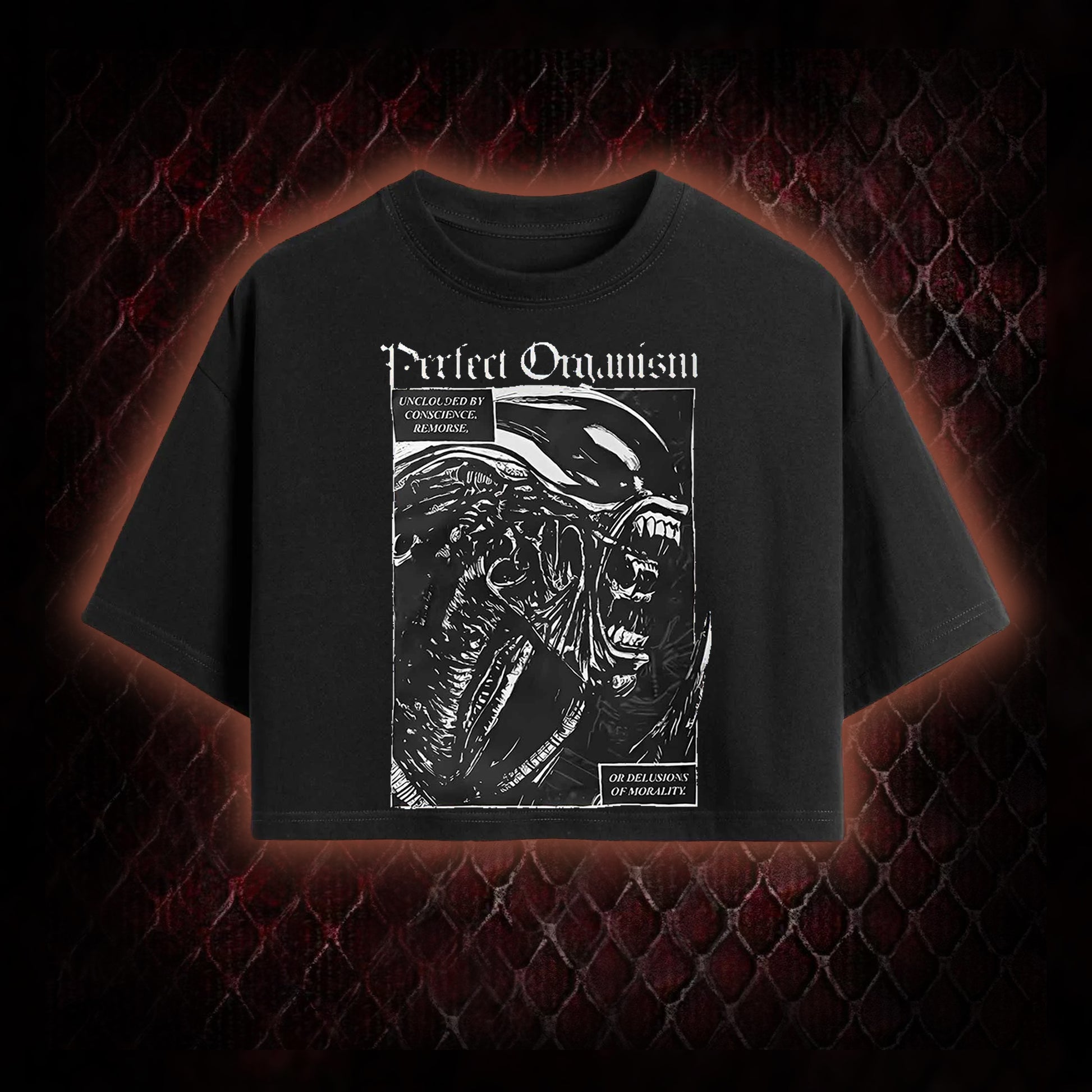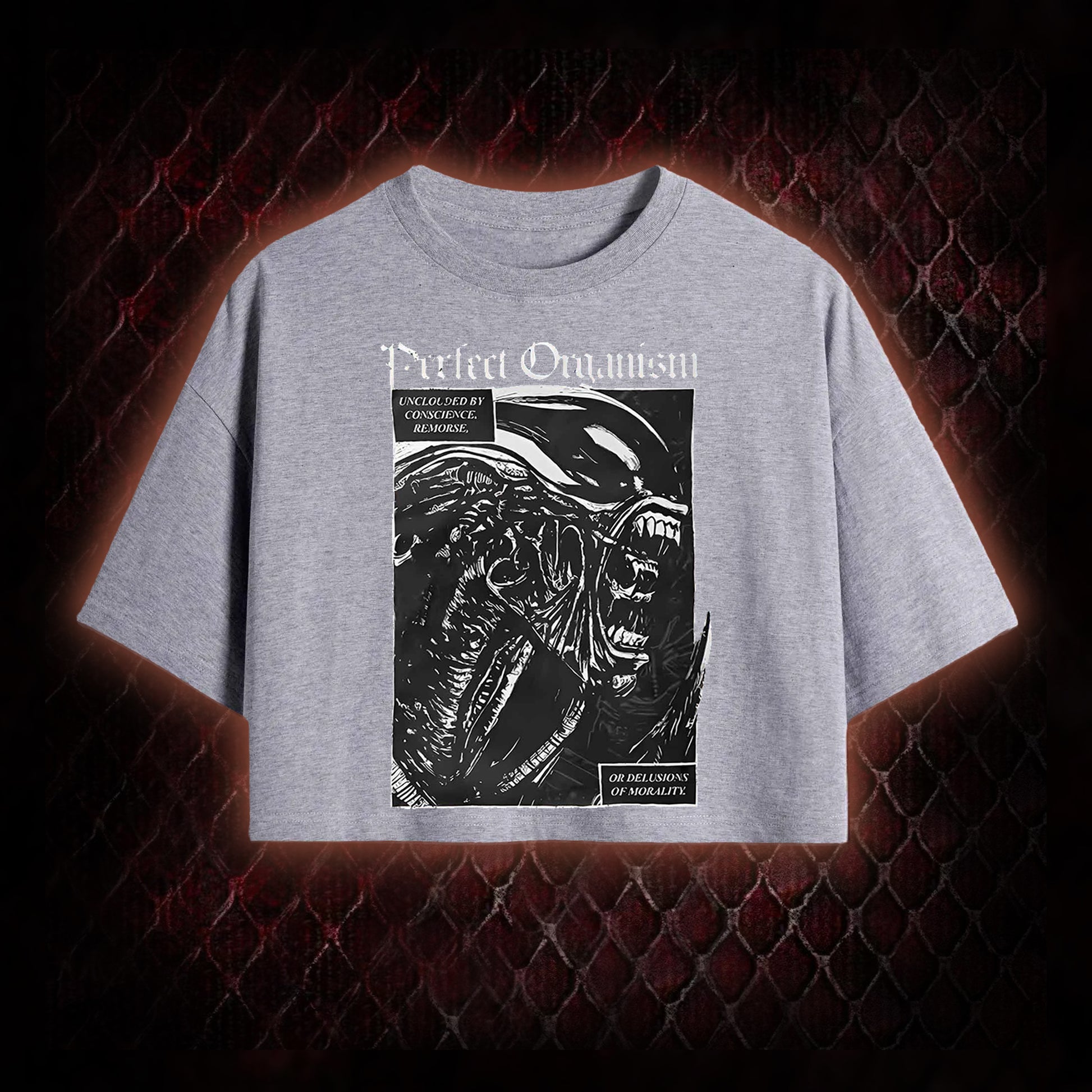 Alien 'Perfect Organism' Xenomorph Graphic Shirt Cropped T-shirt - Sci-Fi Horror Franchise Icon Tribute Piece