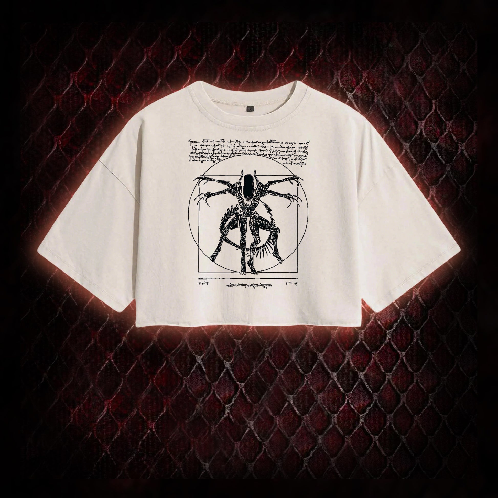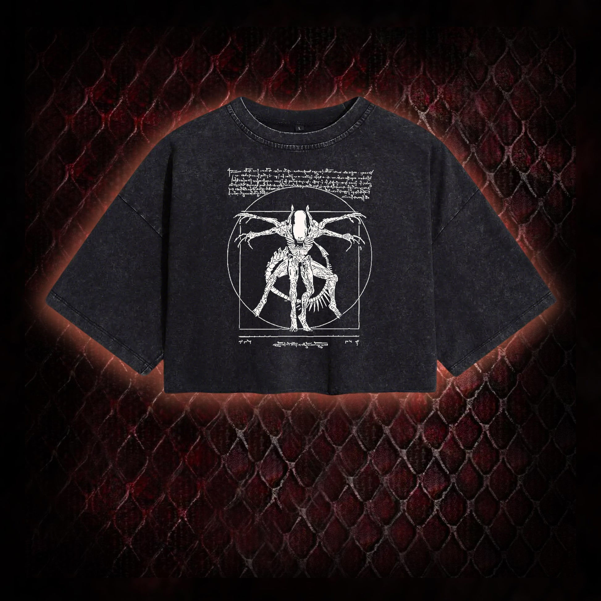 Alien Vitruvian Creature Graphic Shirt Vintage-Cropped T-shirt - Sci-Fi Horror Icon Tribute Piece