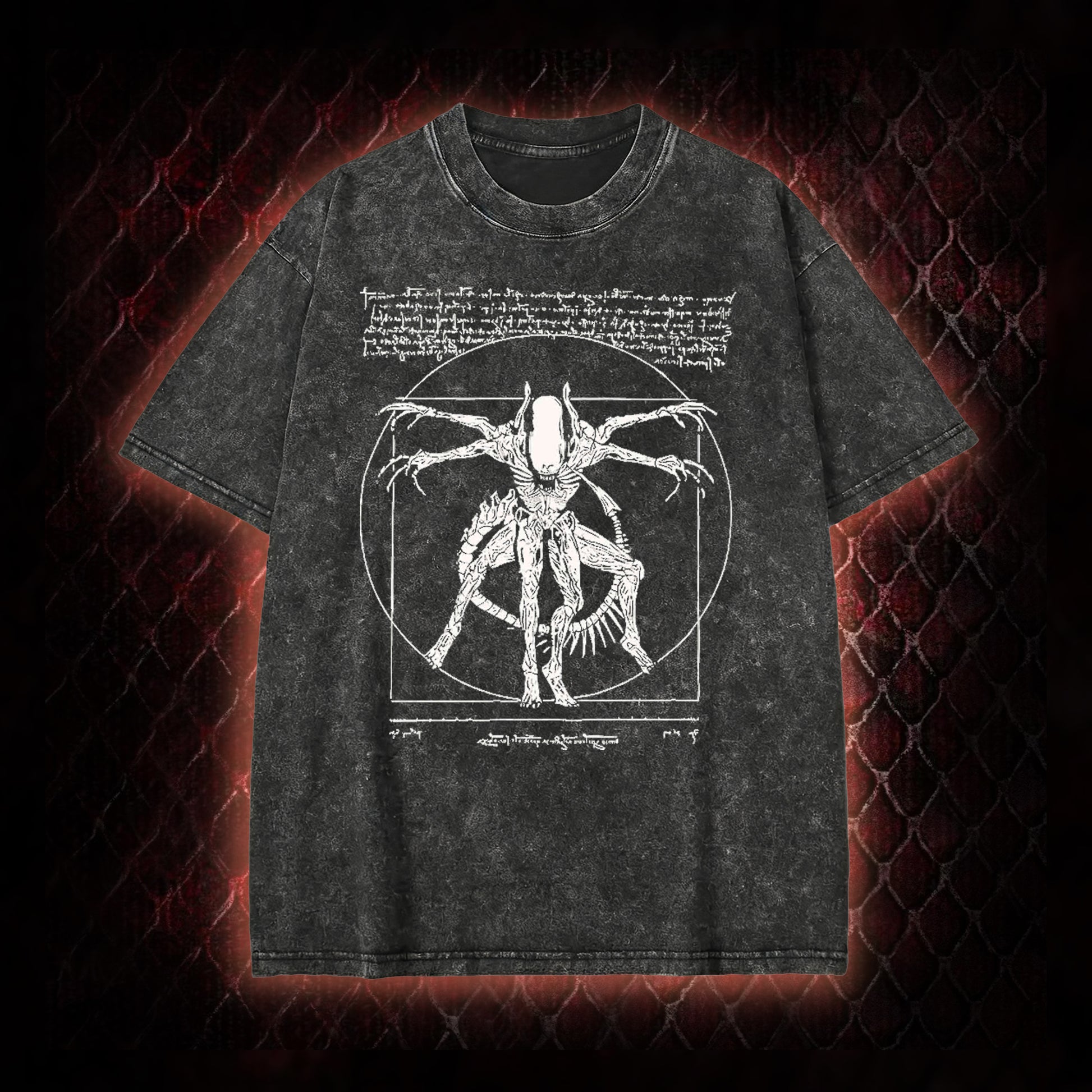 Alien Vitruvian Creature Graphic Shirt Vintage-T-Shirt - Sci-Fi Horror Icon Tribute Piece