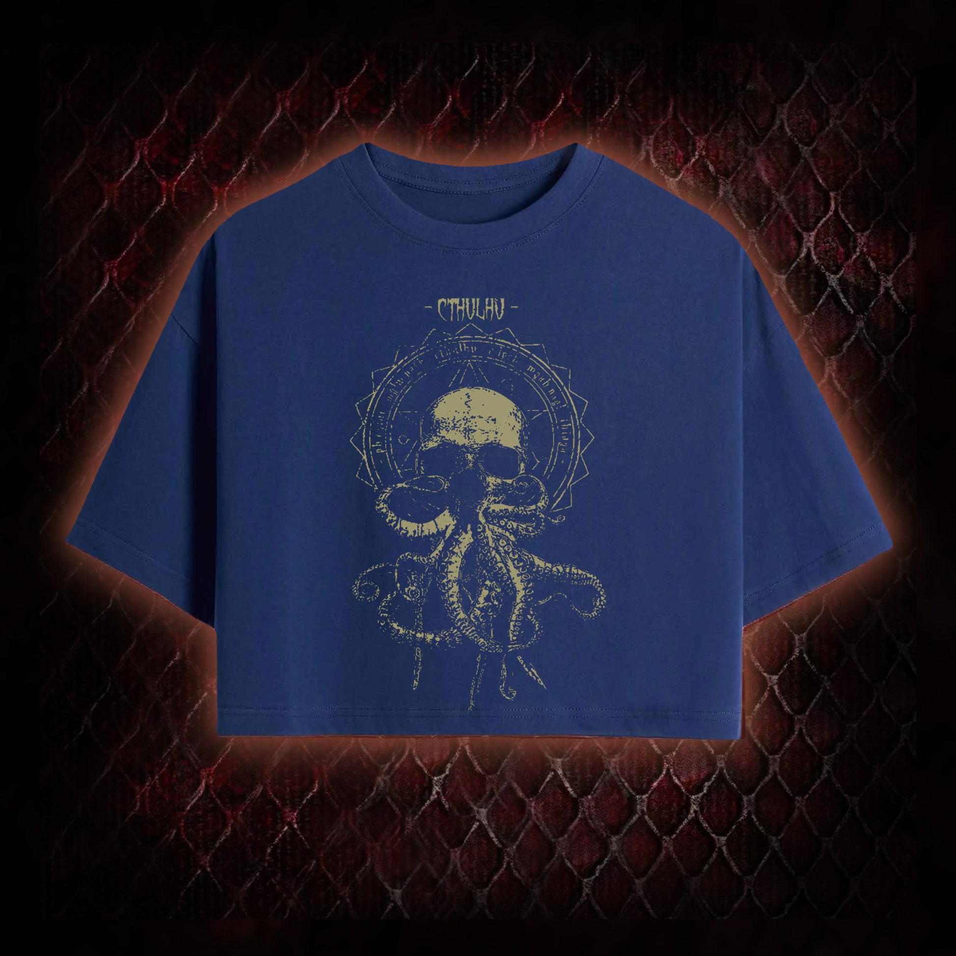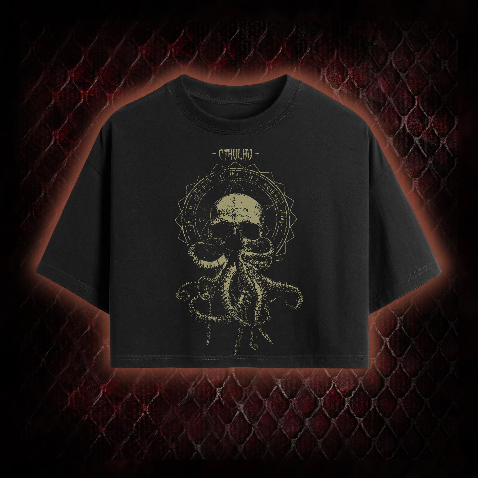 Cthulhu Mythos Skull-Tentacle Occult Graphic Shirt Cropped T-shirt - Lovecraftian Cosmic Horror Tribute Piece