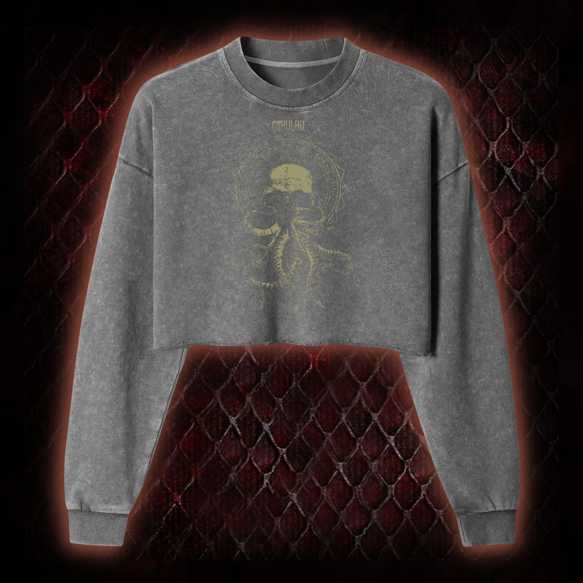 Cthulhu Mythos Skull-Tentacle Occult Washed Cropped Sweatshirt