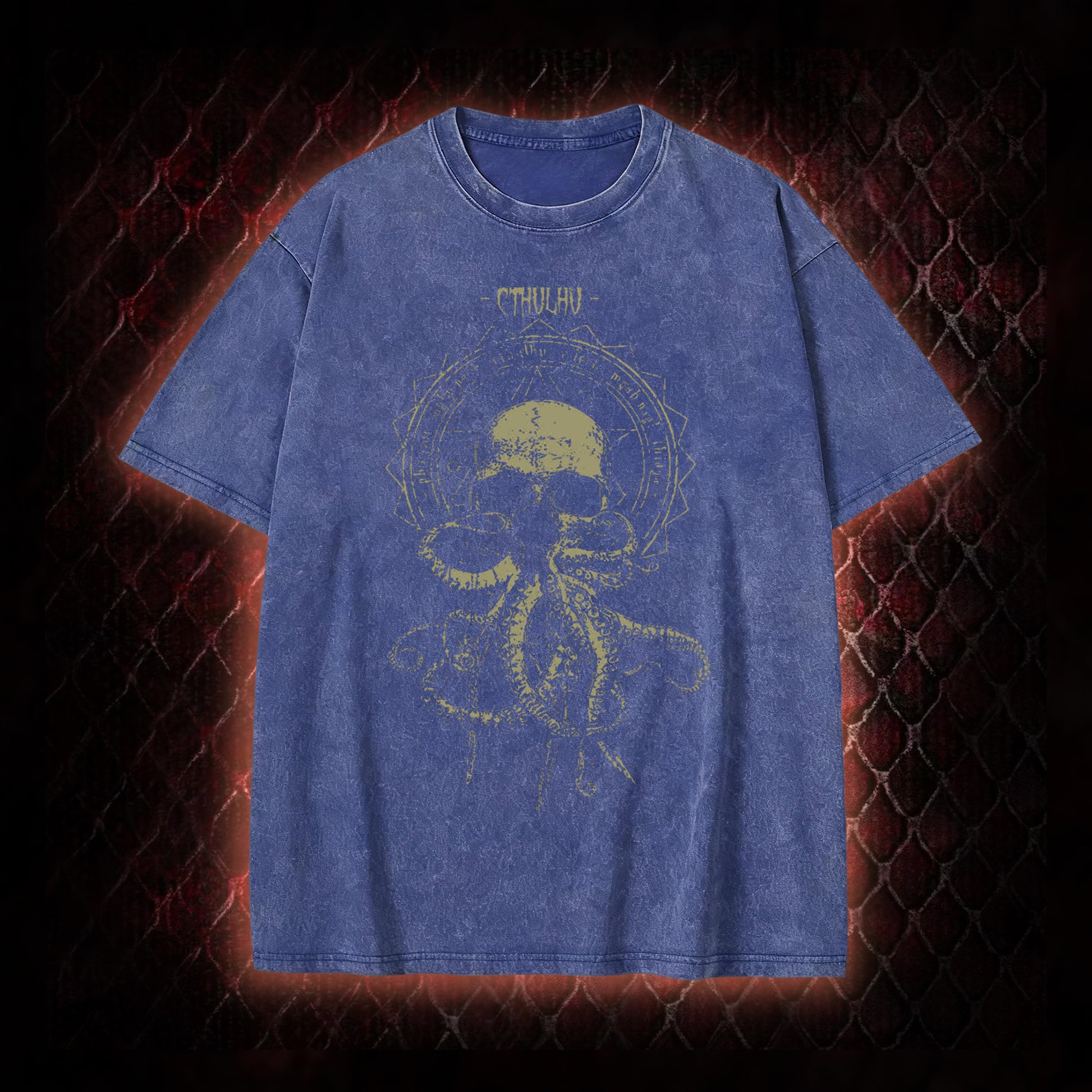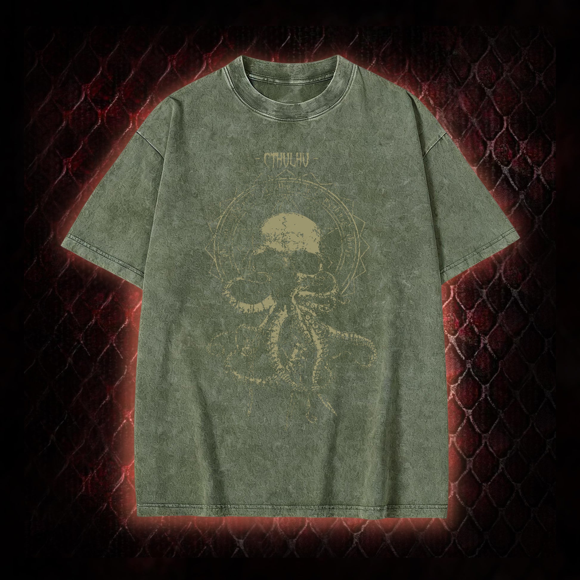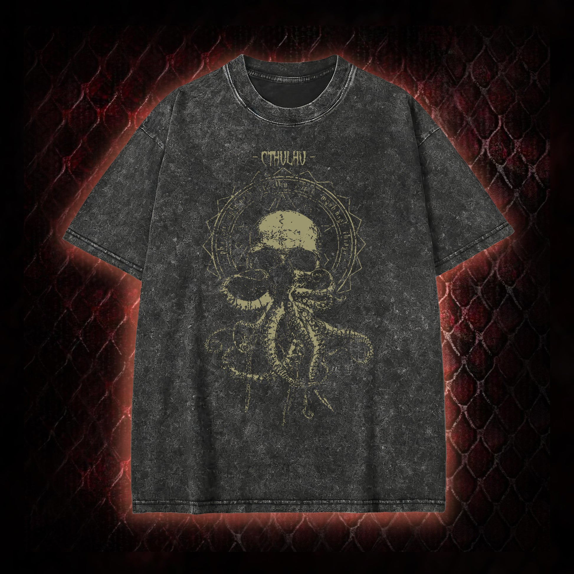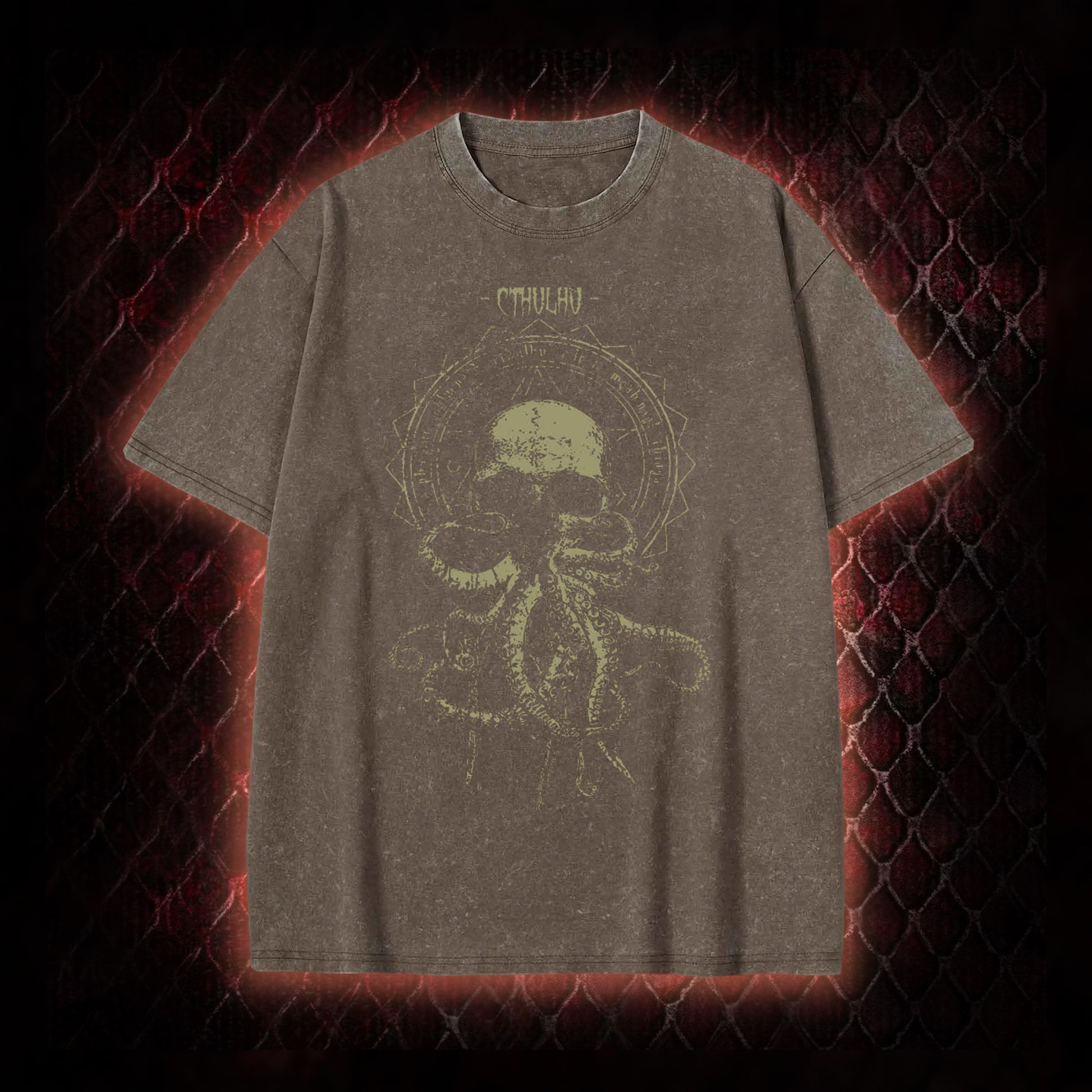 Cthulhu Mythos Skull-Tentacle Occult Vintage Washed T-shirt