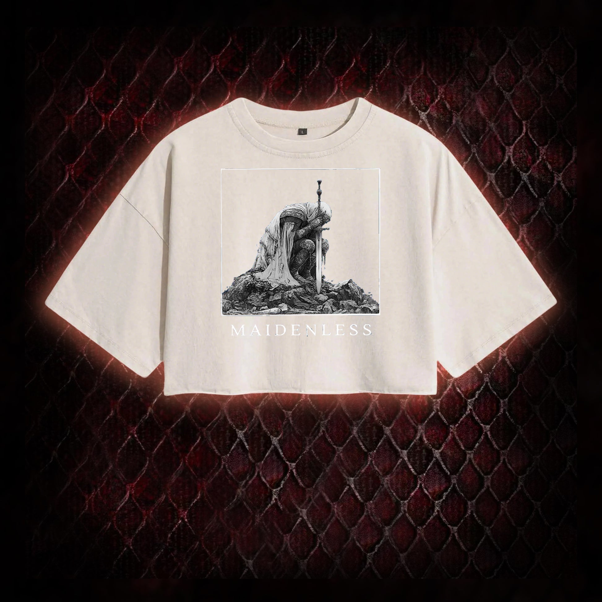 Elden Ring 'Maidenless' Tarnished Knight Graphic Shirt Vintage-Cropped T-shirt - FromSoftware RPG Meme Tribute Piece