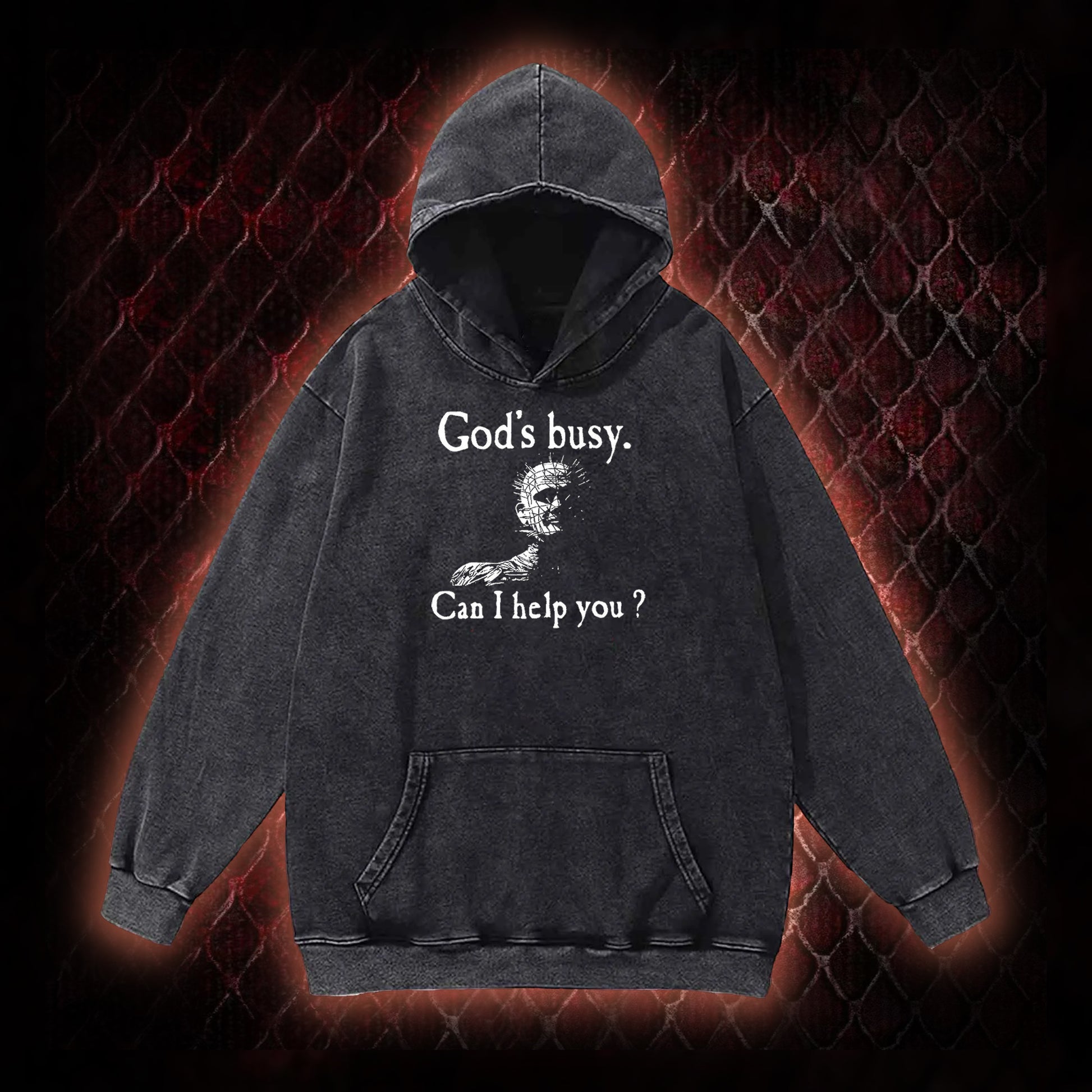 Hellraiser Pinhead 'God's Busy. Can I Help You?' Graphic Shirt Vintage-Hoodie - Cult Horror Dark Humor Statement Piece
