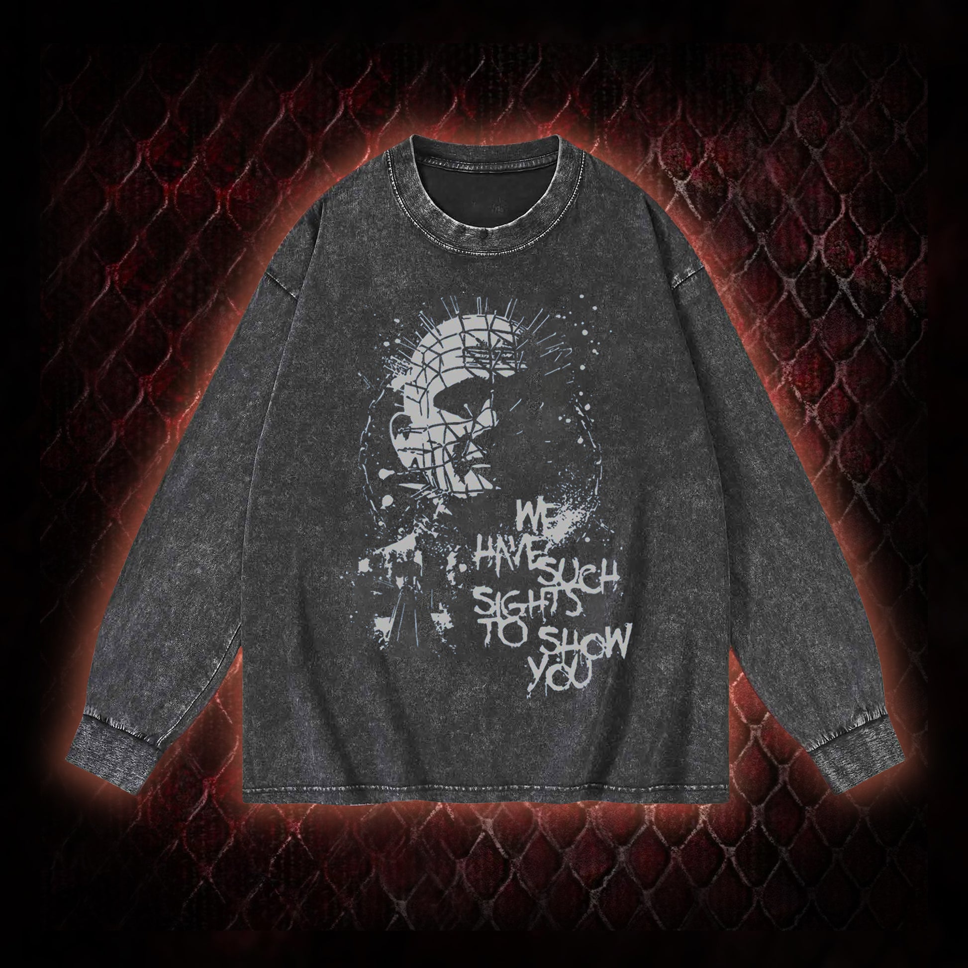 Hellraiser Pinhead 'We Have Such Sights To Show You' Graphic Vintage-Sweatshirt - Cult Horror Icon Tribute Piece