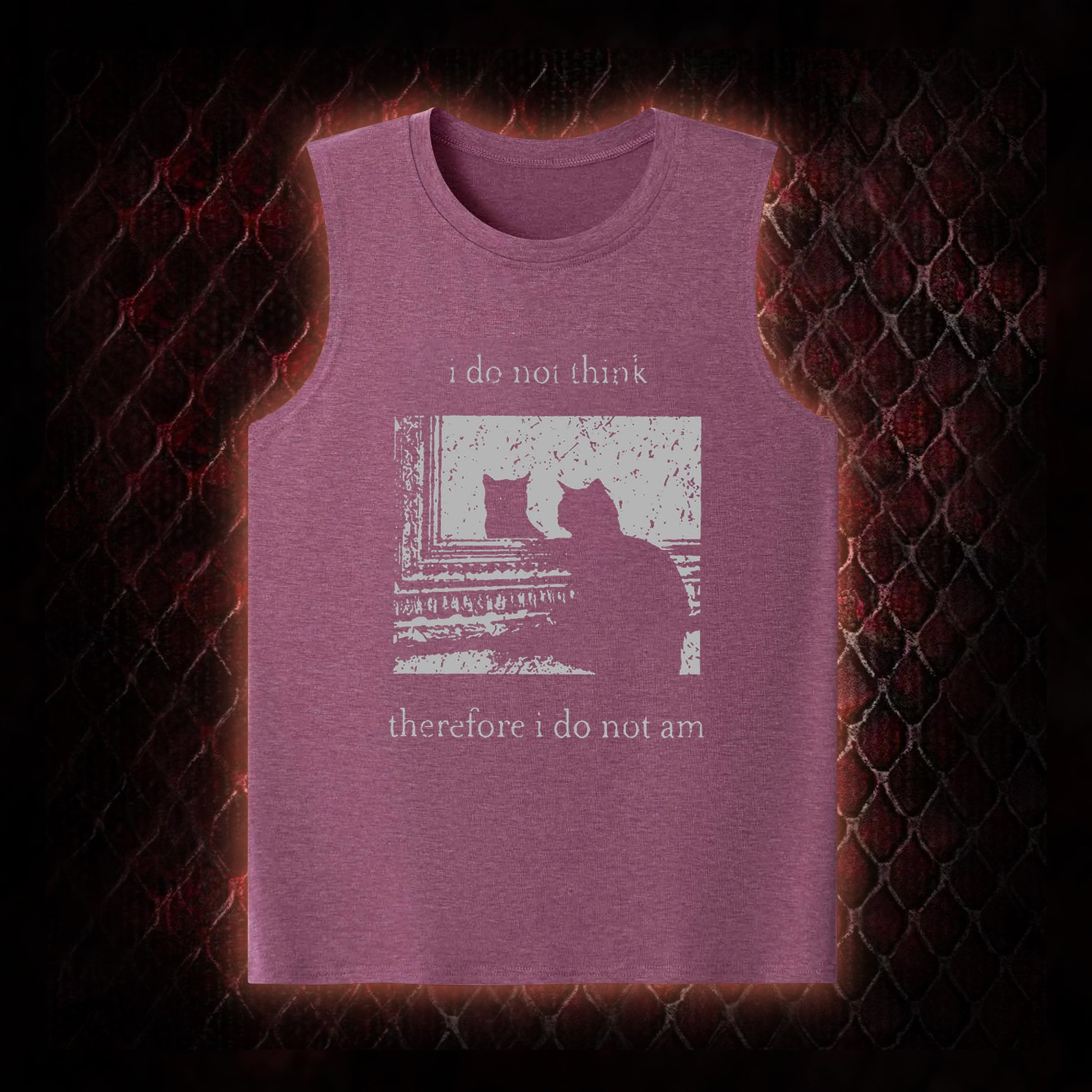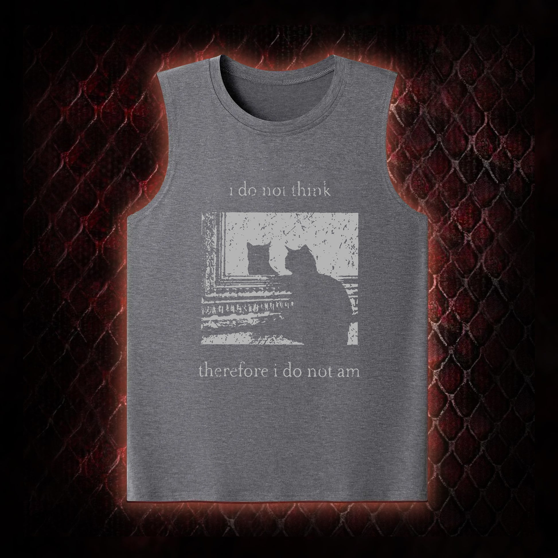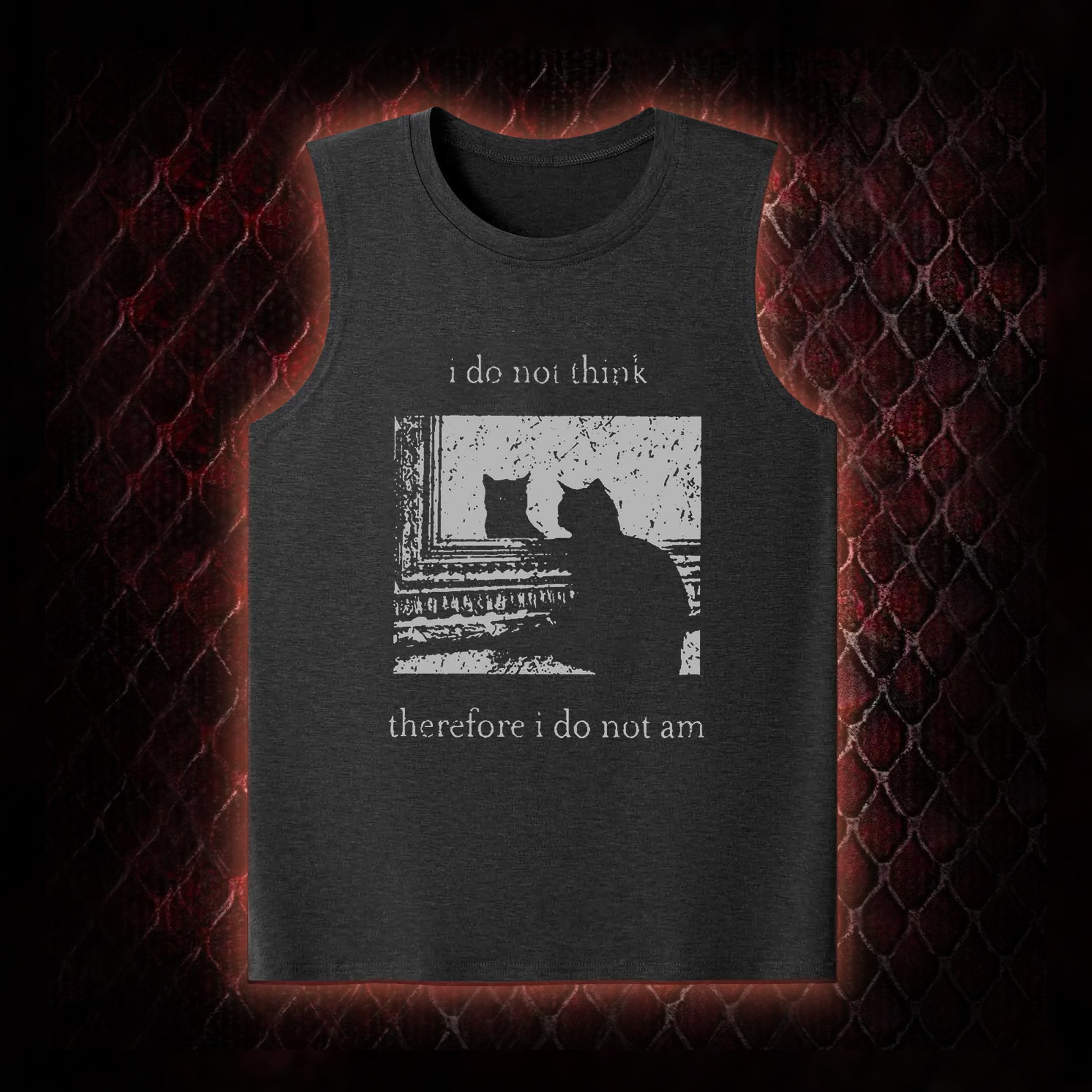 Philosophical Cat Meme 'I Do Not Think Therefore I Do Not Am' Graphic Shirt Classic-Tank - Humorous Philosophy & Cat Enthusiast Statement Piece