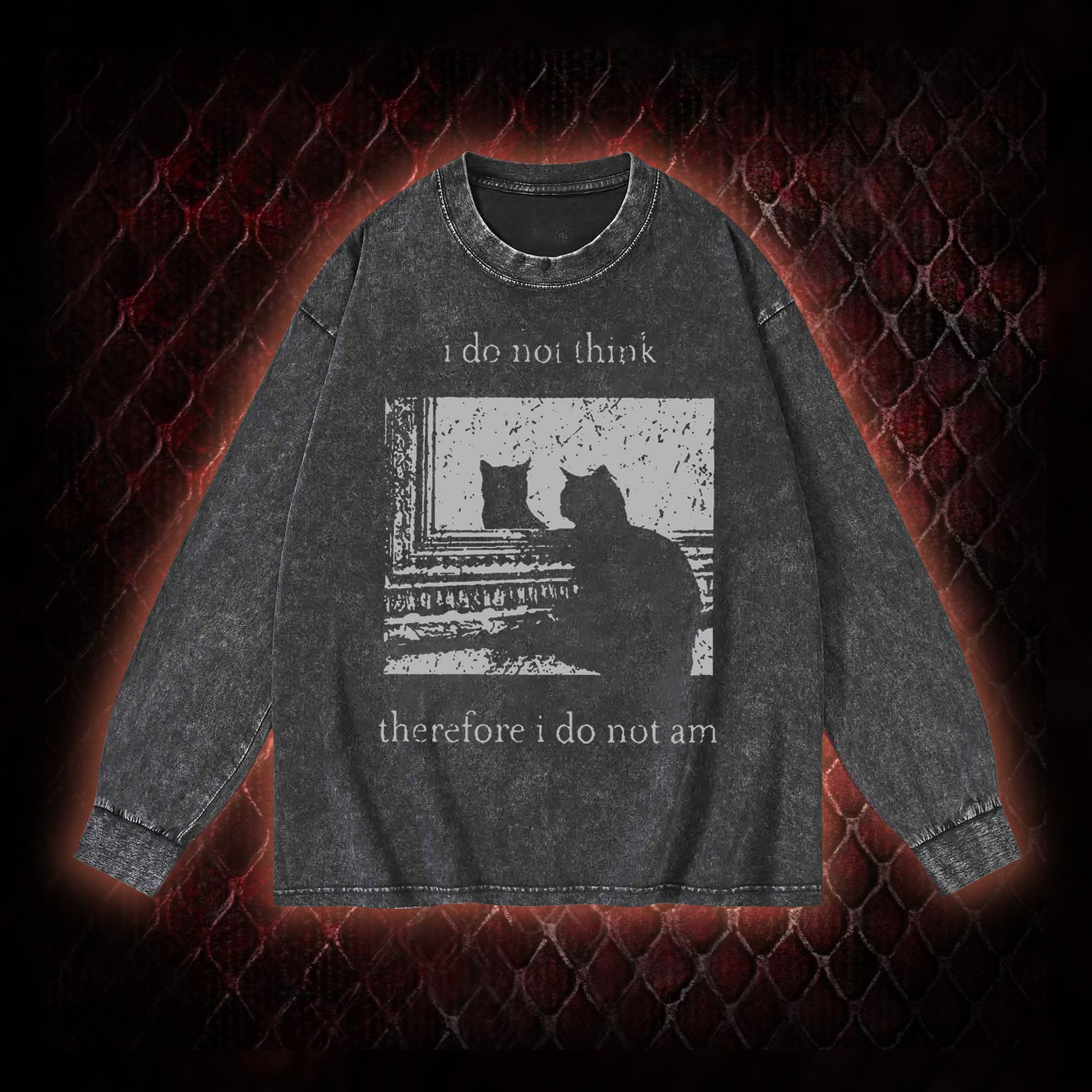Philosophical Cat Meme 'I Do Not Think Therefore I Do Not Am' Graphic Shirt Vintage-Sweatshirt - Humorous Philosophy & Cat Enthusiast Statement Piece