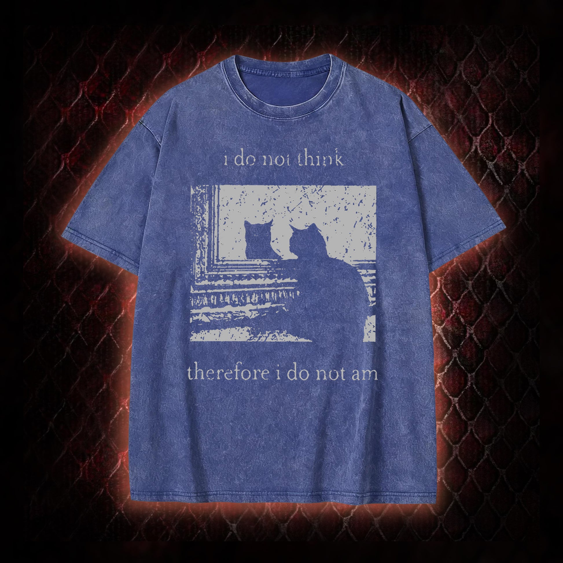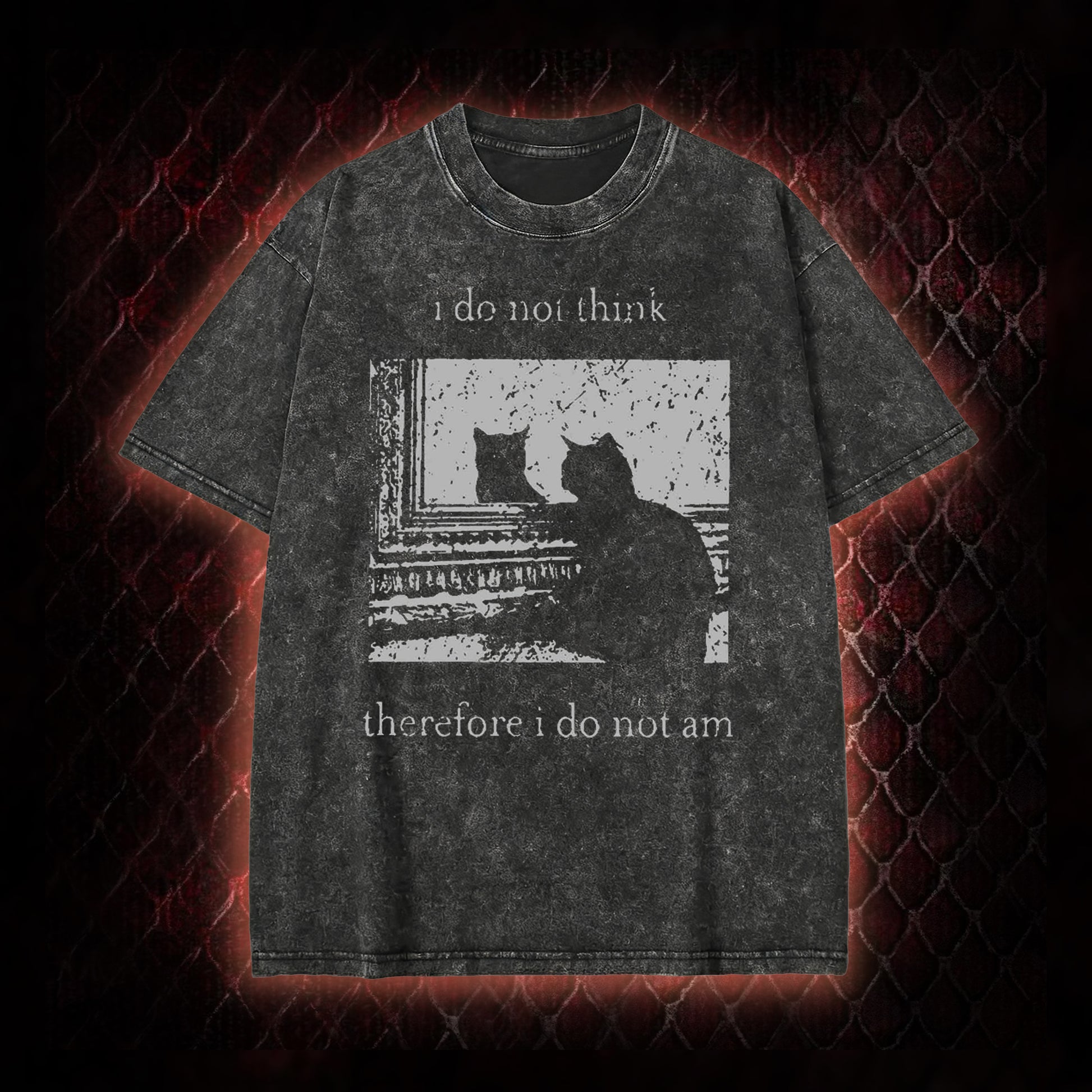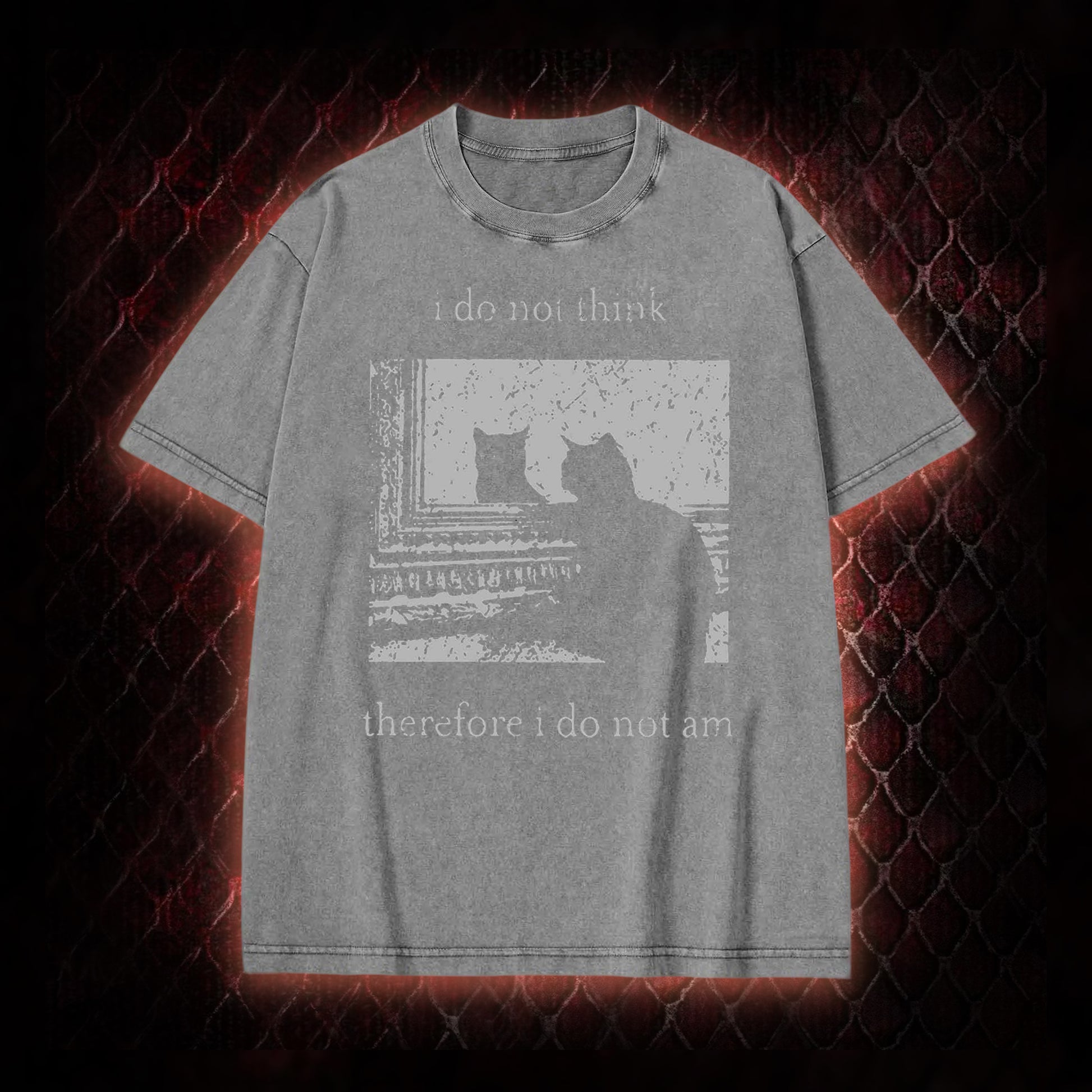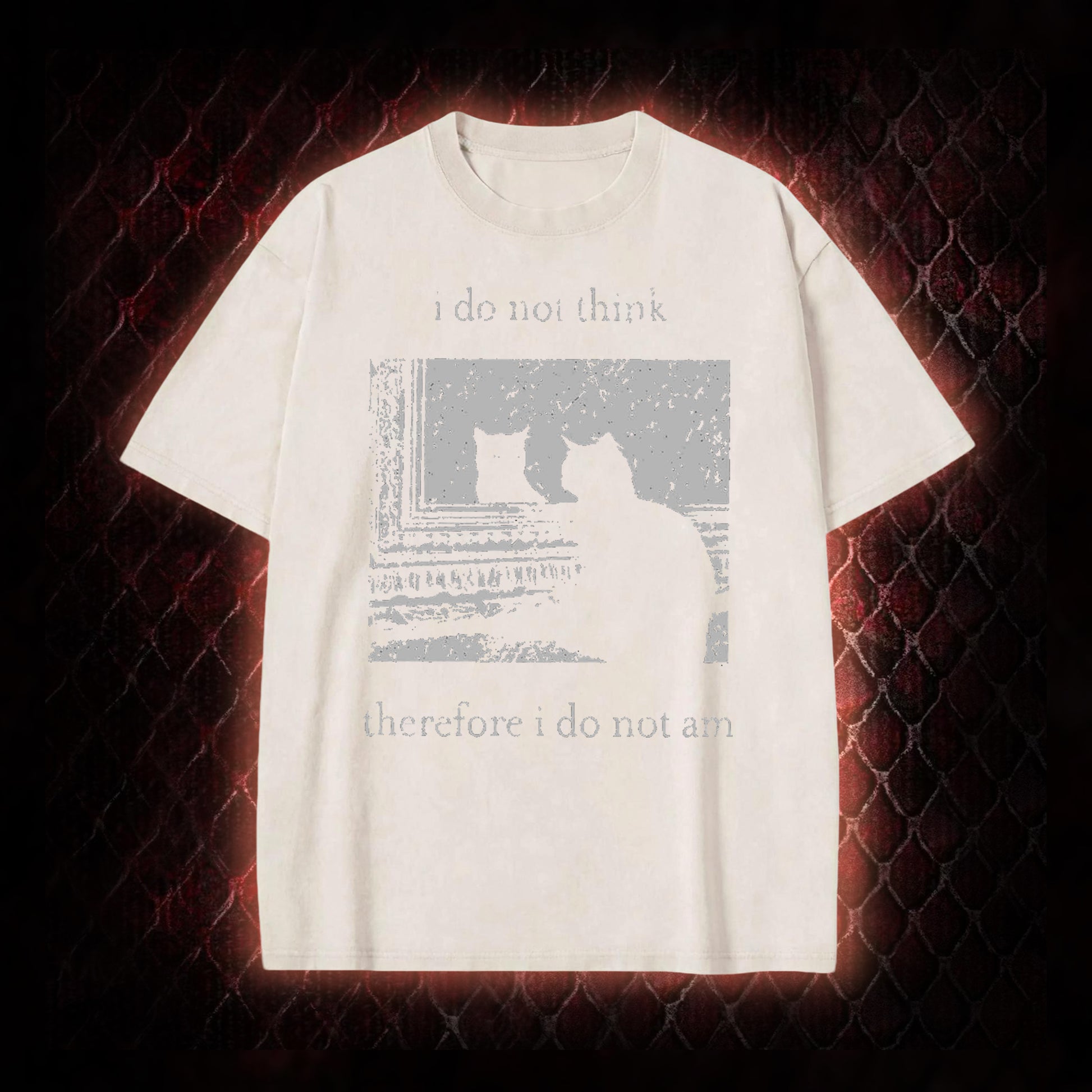 Philosophical Cat Meme 'I Do Not Think Therefore I Do Not Am' Graphic Shirt Vintage-T-Shirt - Humorous Philosophy & Cat Enthusiast Statement Piece