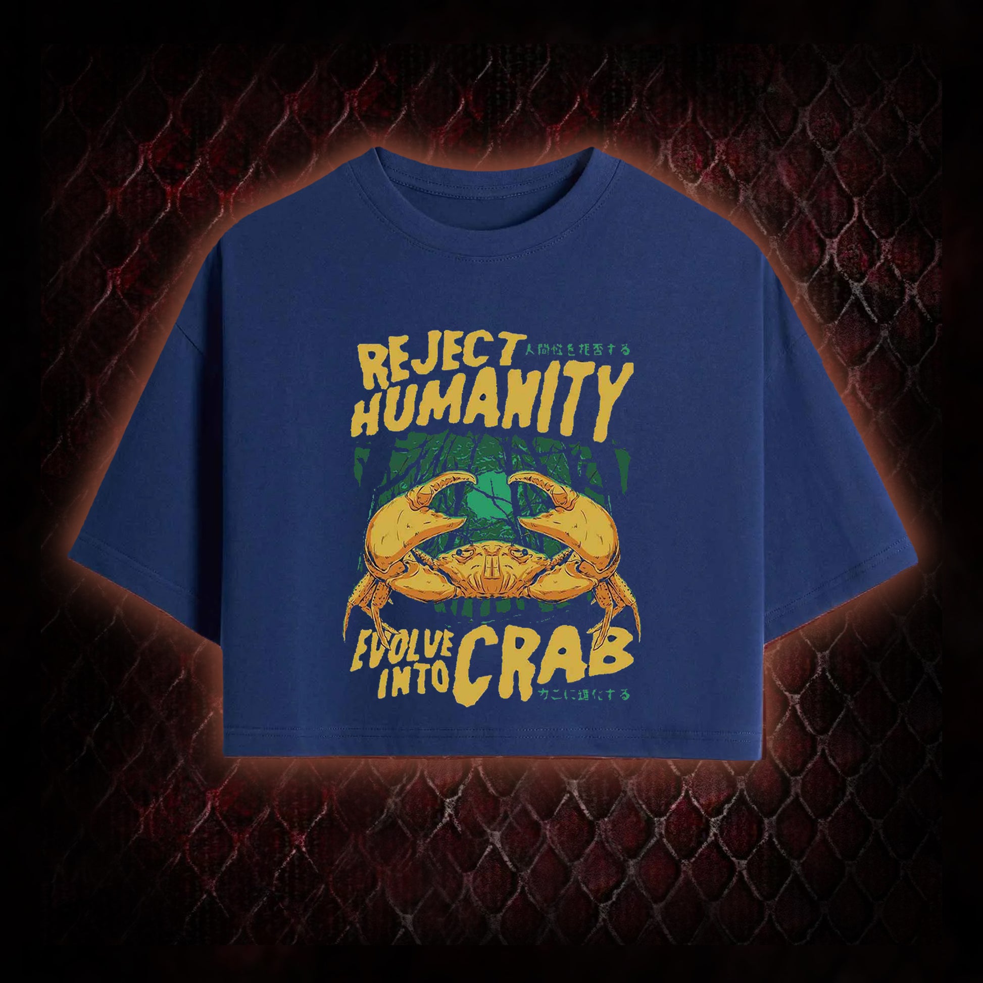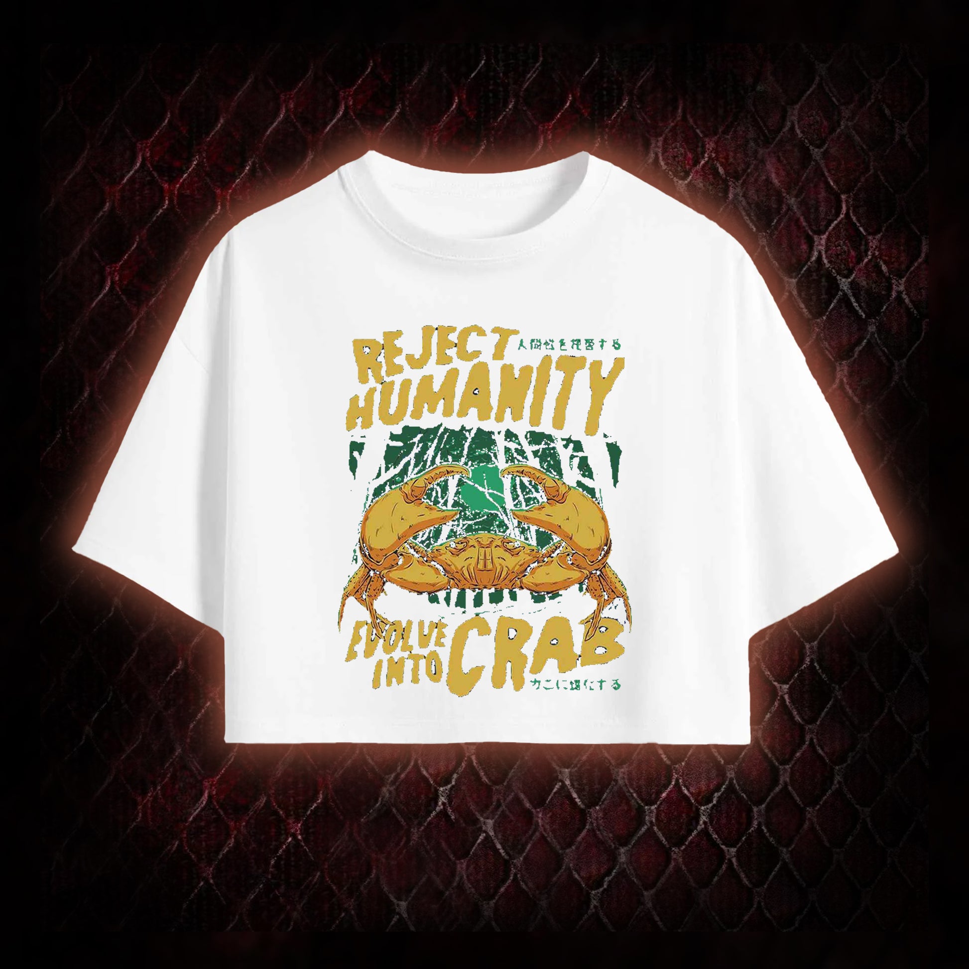 Reject Humanity Evolve Into Crab Meme Graphic Cropped T-shirt - Viral Internet Humor Statement Piece