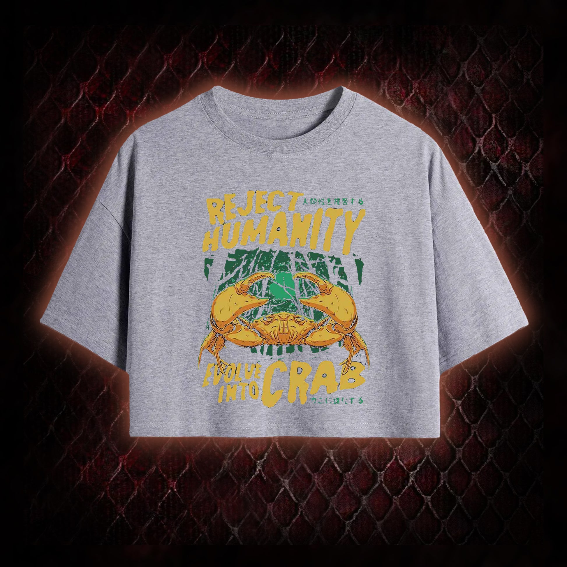 Reject Humanity Evolve Into Crab Meme Graphic Shirt Cropped T-shirt - Viral Internet Humor Statement Piece