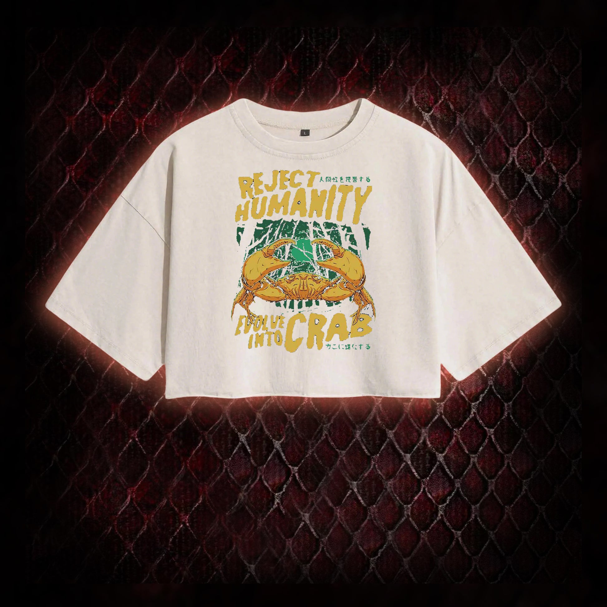 Reject Humanity Evolve Into Crab Meme Graphic Vintage-Cropped T-shirt - Viral Internet Humor Statement Piece