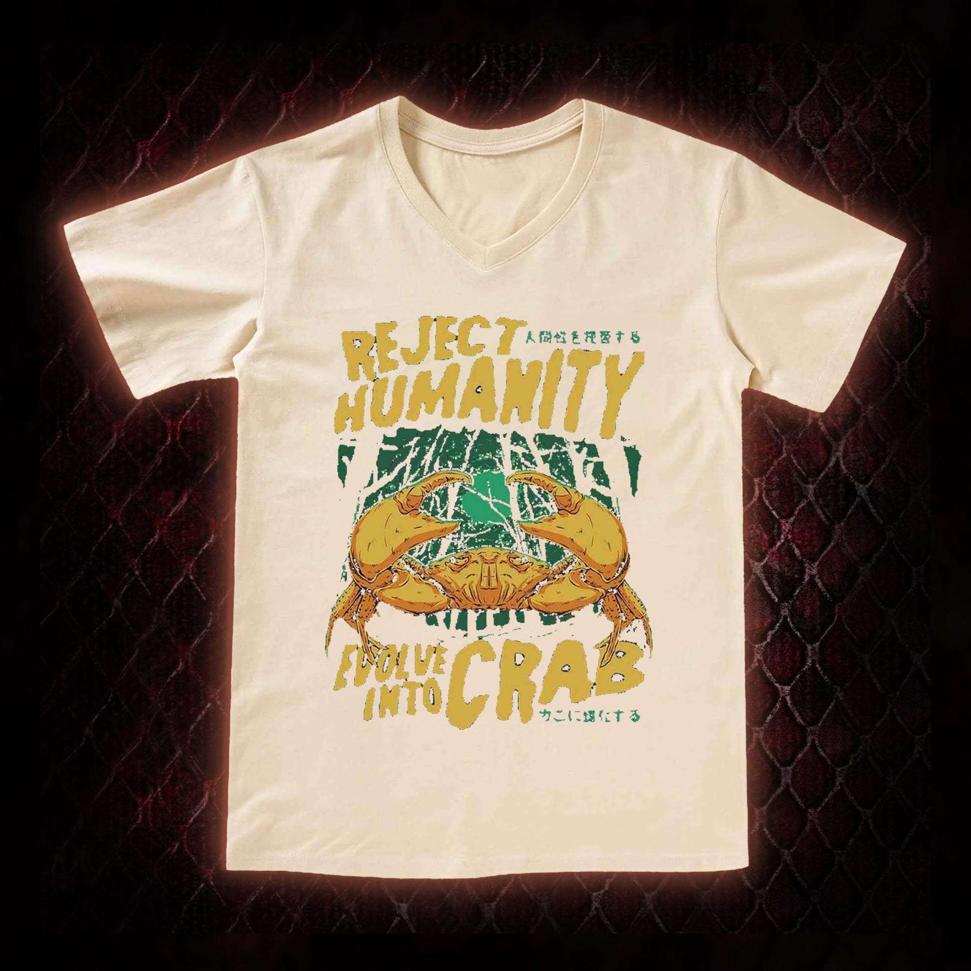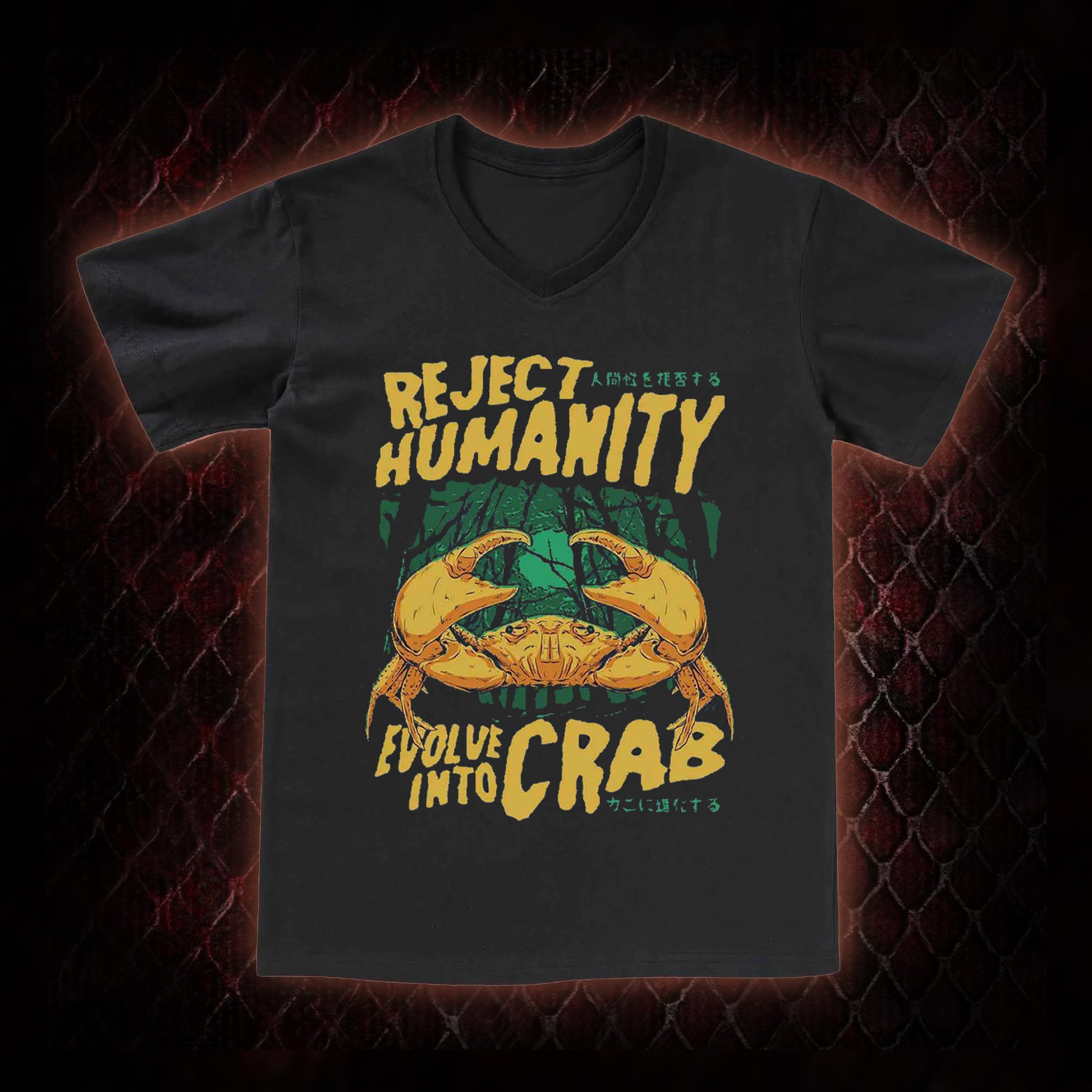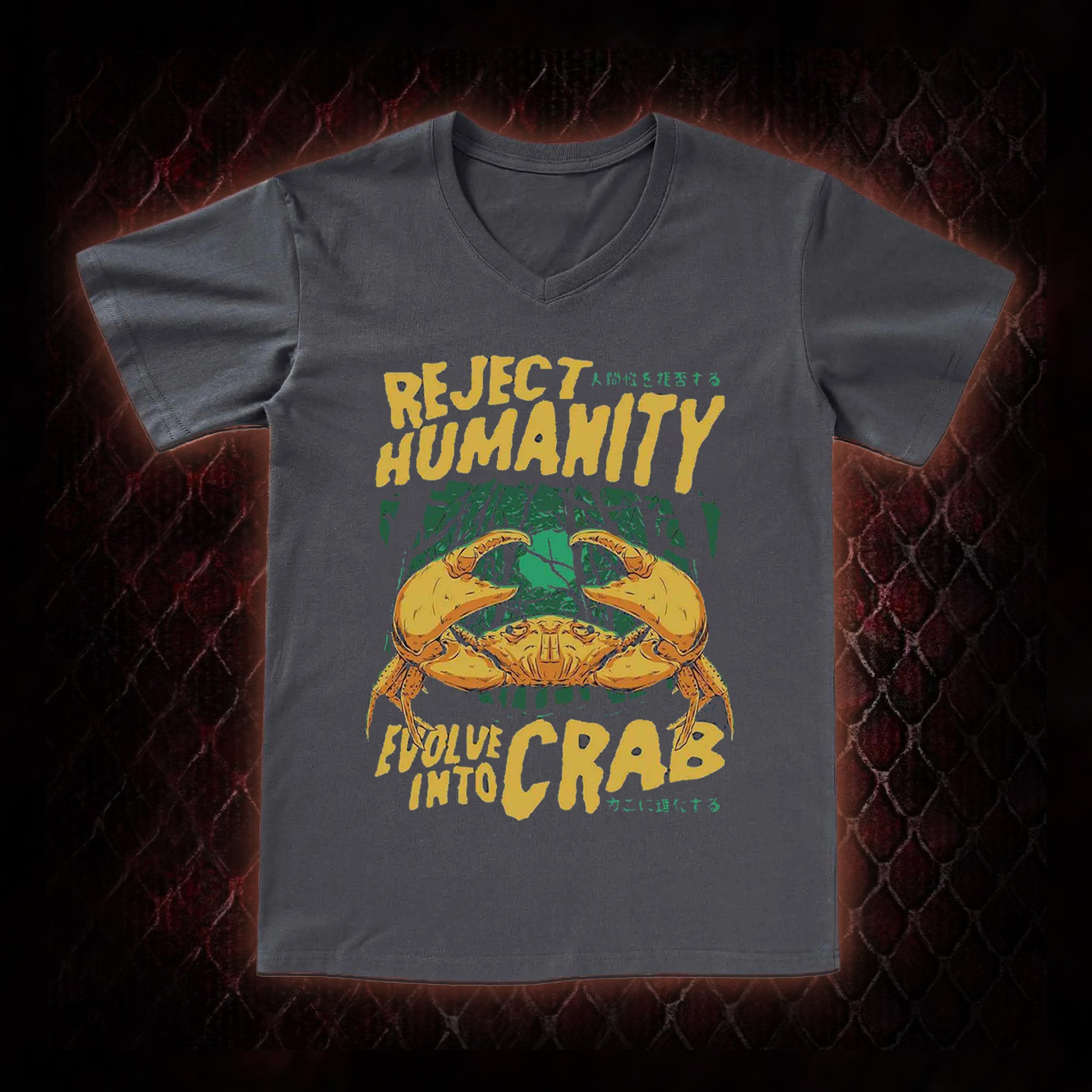 Reject Humanity Evolve Into Crab Meme Graphic V-Neck T-Shirt - Viral Internet Humor Statement Piece