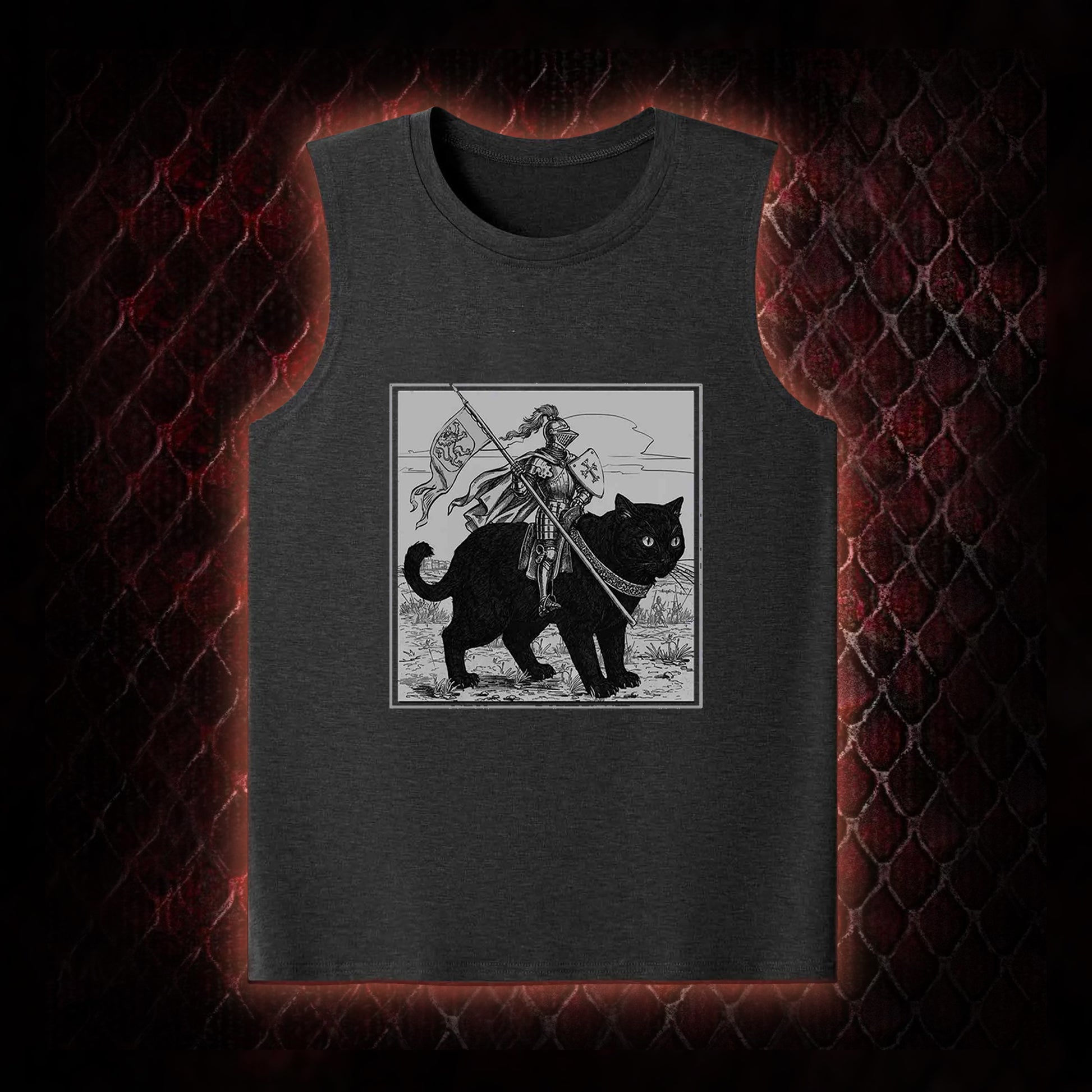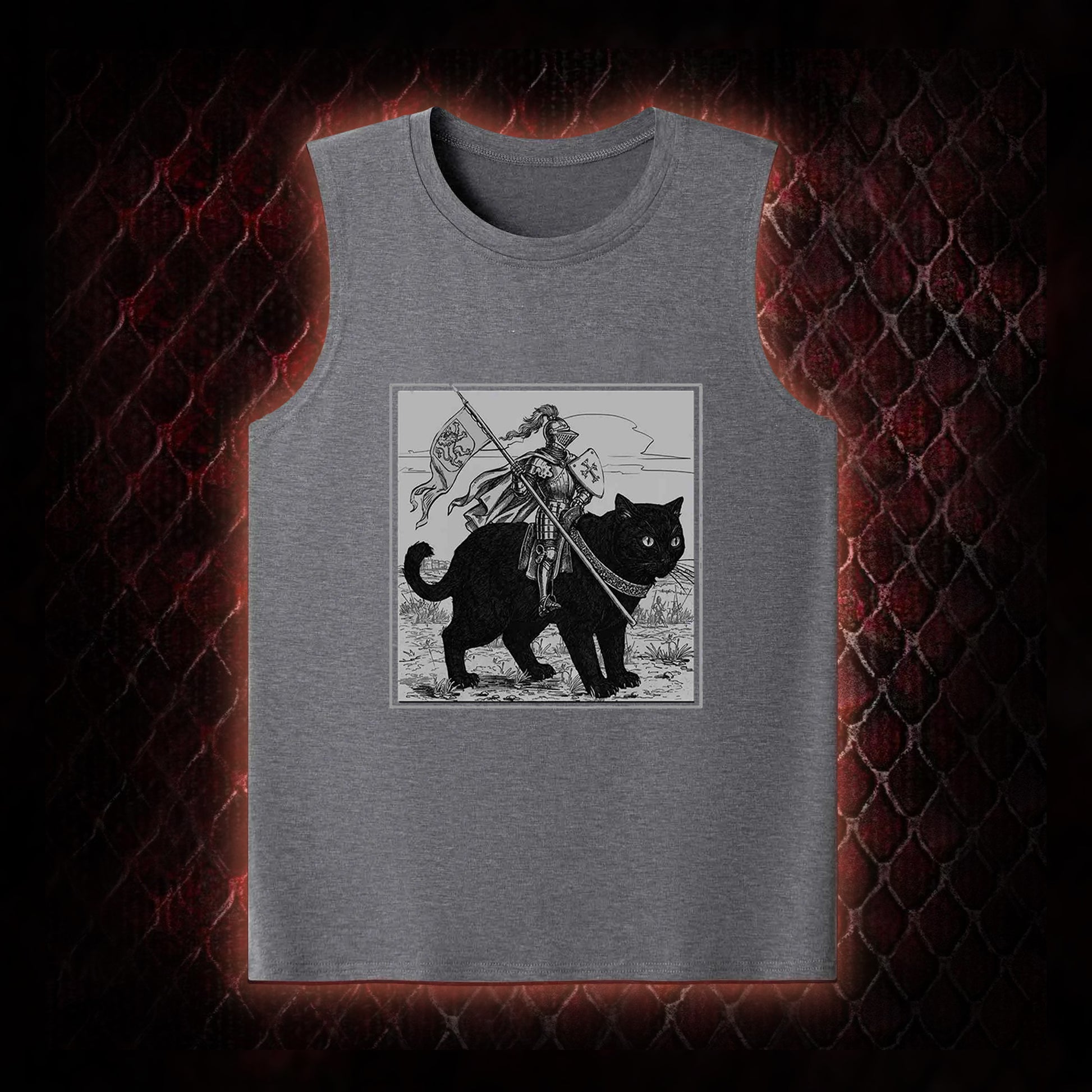 Vintage Knight & Giant Black Cat Medieval Fantasy Graphic Classic-Tank - Whimsical Retro Aesthetic Statement Piece